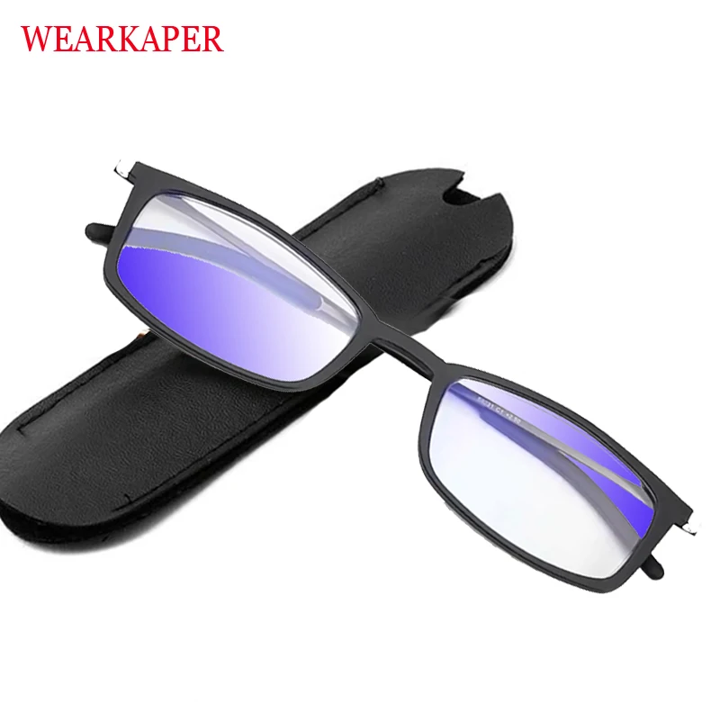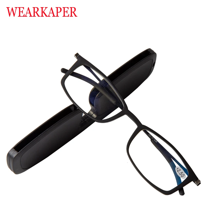 WEARKAPER анти-синий светлый бумажник очки для чтения прямоугольной формы ультра-легкий компактный чехол для ежедневного ношения Очки