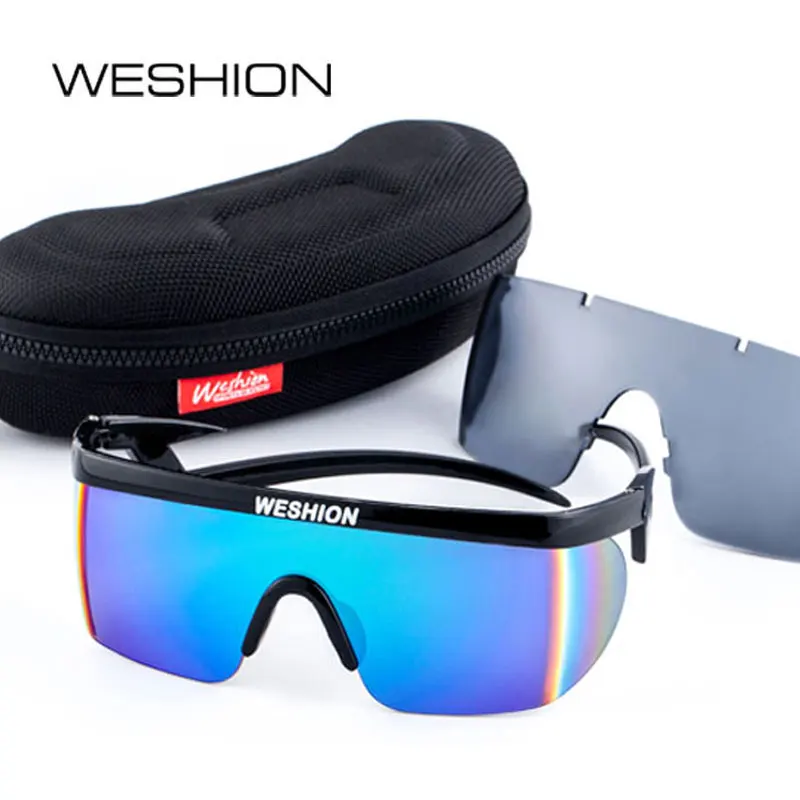 WESHION солнцезащитные очки Для мужчин клип на спортивные солнцезащитные очки плюс Размеры зеркальное покрытие Радуга объектив Открытый Óculos ...