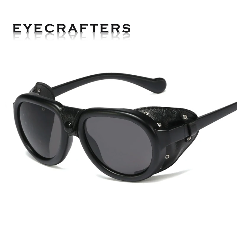 2020 Модные мужские стимпанк металлические готические очки Солнцезащитные очки женские ретро модные кожаные с боковыми оттенками круглые солнцезащитные очки