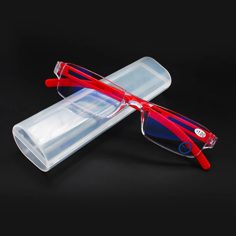 Унисекс Легкие прозрачные тонкие модные очки без оправы для чтения диоптрийные очки-1,00 4,00 с кожаным чехлом