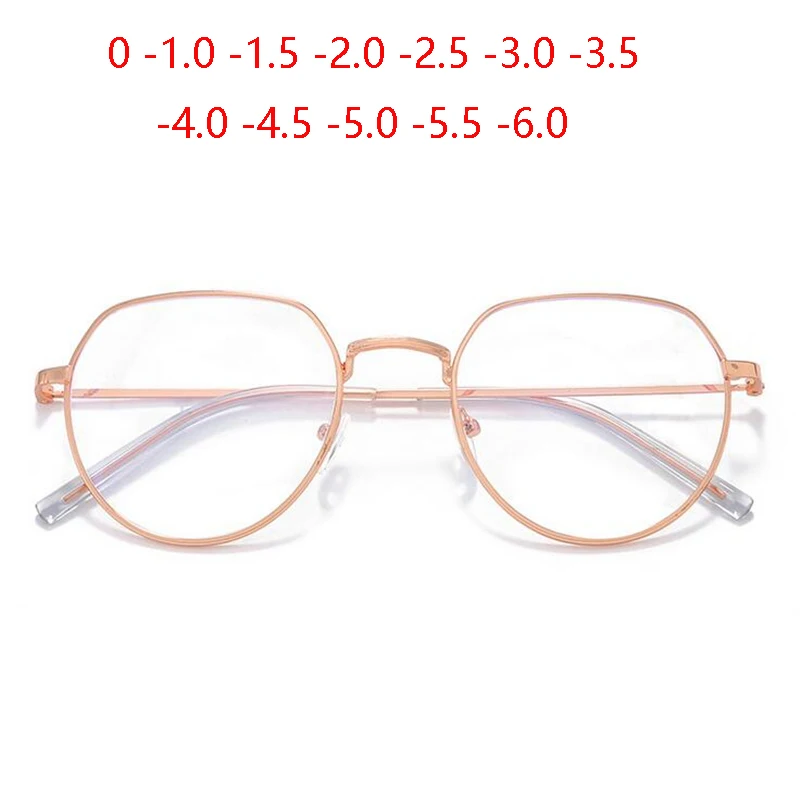 Розовый Золотой неровный оправа готовые близорукие очки Женские Ретро Анти-синий светильник студенческие близорукие очки от 0 до 1,0 до 6,0