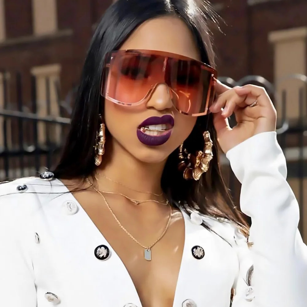 Модные унисекс негабаритные козырек Солнцезащитные очки женские 2019 Маска щит ретро градиент солнцезащитные очки металлическая рамка мужс...