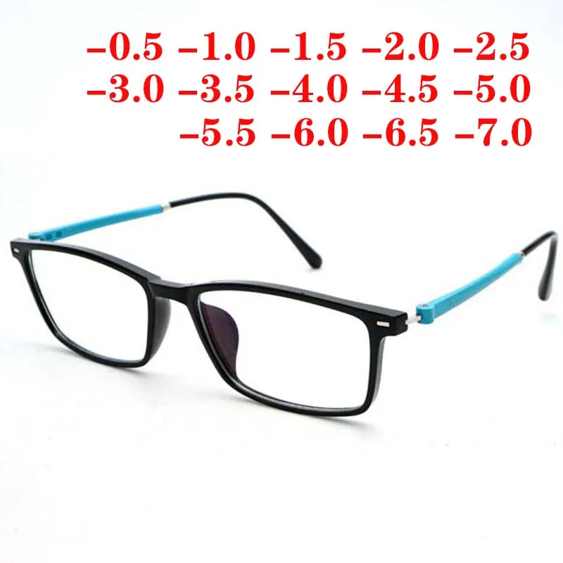 TR90 мужские и женские мужские очки в квадрате, компьютерные очки, анти-синий светильник, по рецепту, готовые очки для близорукости-0,5-1-1,5-2 -3 -4 -5 -6-6,5-7