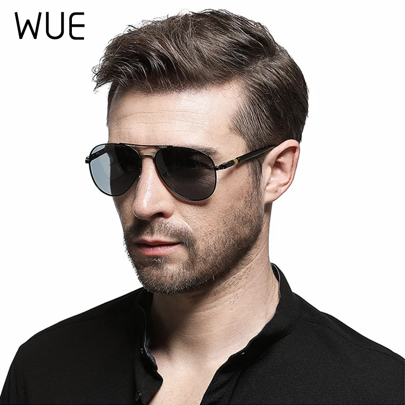 WUE классические поляризационные фотохромные солнцезащитные очки для мужчин и женщин, брендовые дизайнерские очки в оправе из сплава для вождения, рыбалки