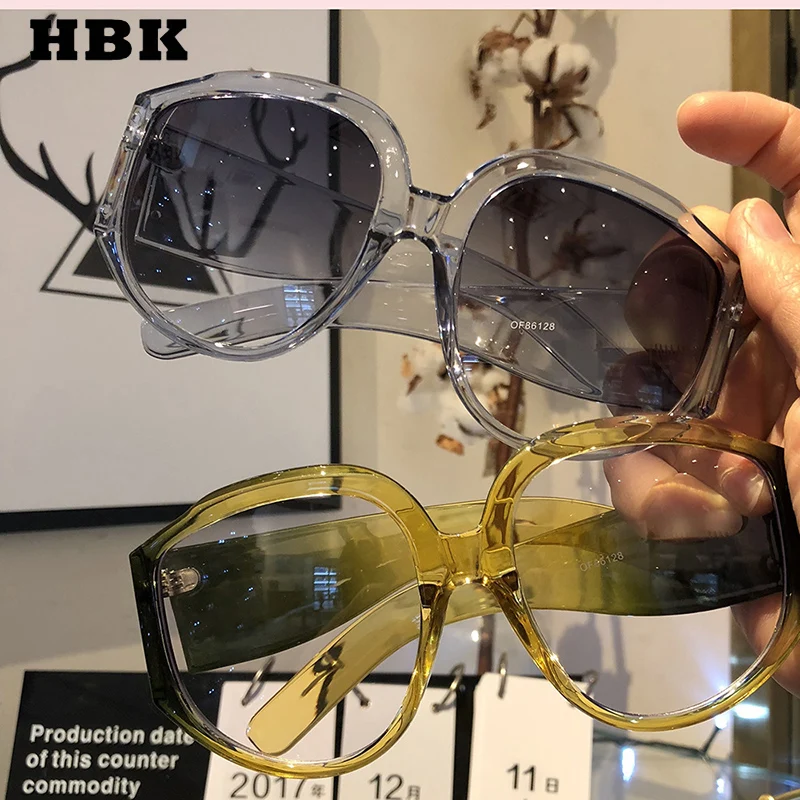 HBK 2019 Новая мода Квадратные Солнцезащитные очки большой кадр Для женщин Брендовая дизайнерская обувь ретро Карамельный цвет прозрачный очк...