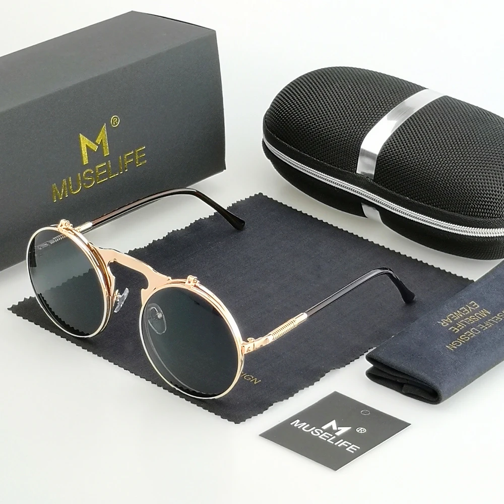 RunBird круглый ретро стимпанк Для мужчин Для женщин солнцезащитные очки металлический Винтаж солнцезащитные очки Брендовая Дизайнерская обу...