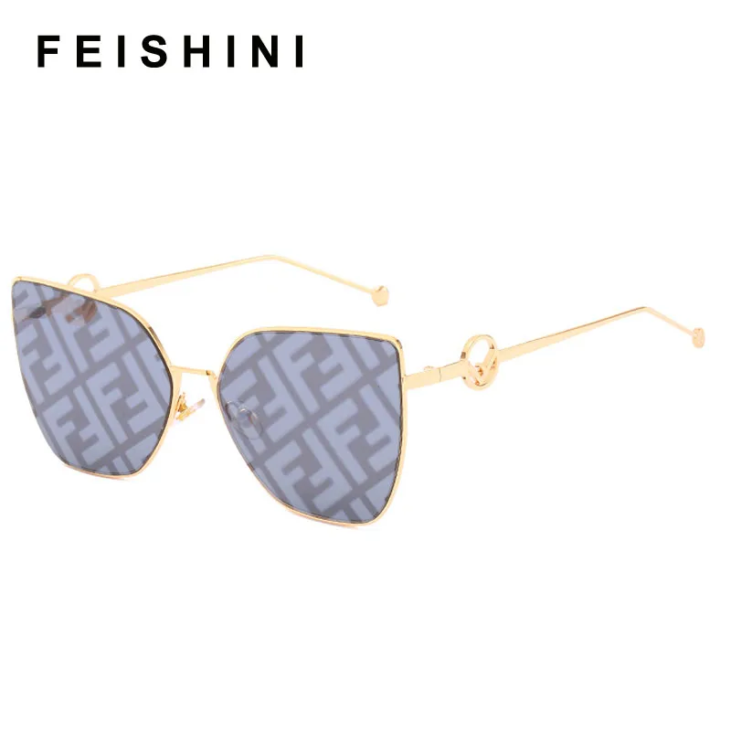 FEISHINI зеркальная отделка металлическая оправа кошачий глаз солнцезащитные очки женские 2020 модные трендовые женские солнцезащитные очки УФ-защита градиентный серый