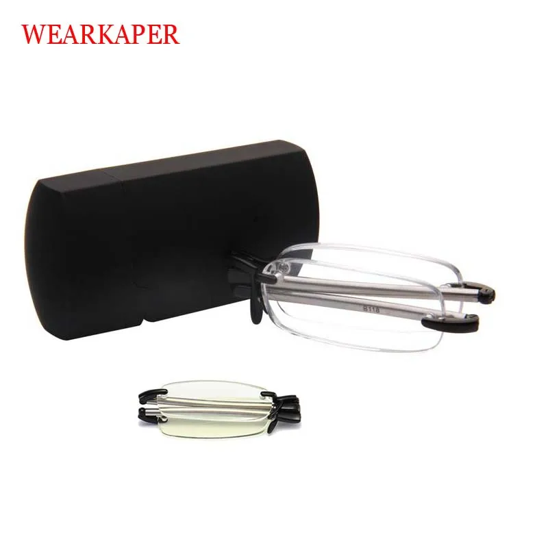 Складные портативные очки для чтения без оправы для женщин и мужчин, очки с защитой от синего света по рецепту, качественные очки из сплава с дальнозоркостью 1,0-4,0