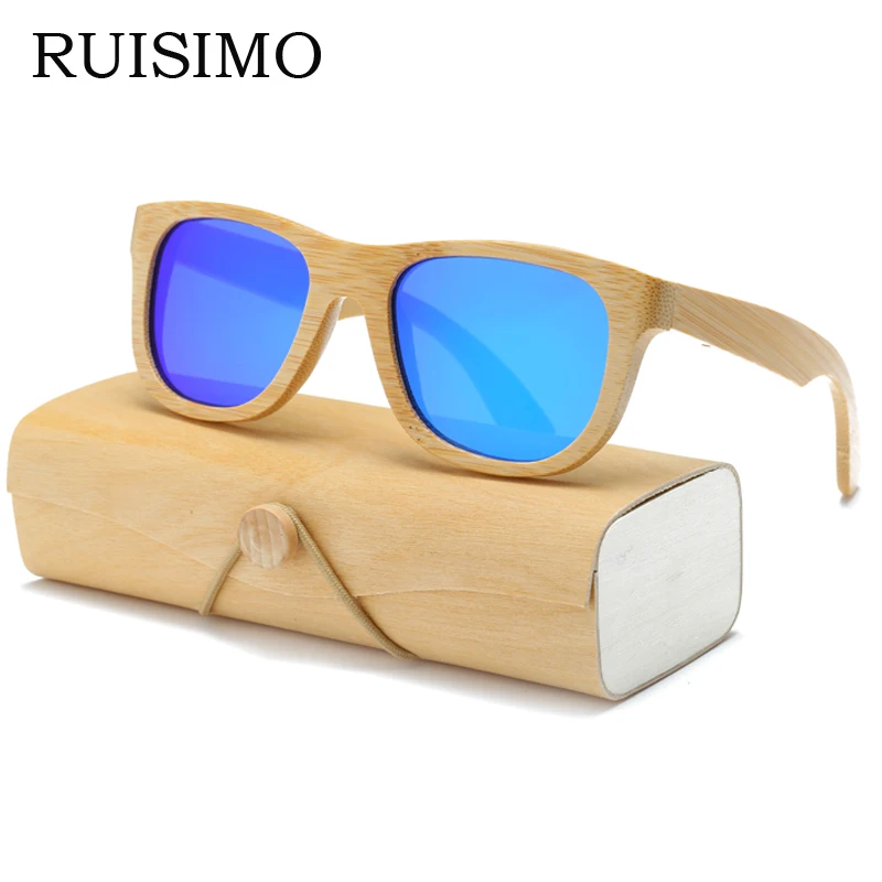 Деревянные солнцезащитные очки для мужчин и женщин, квадратные бамбуковые очки для мужчин и женщин, зеркальные солнцезащитные очки в стиле ретро de sol masculino 2017, ручная работа с чехлом
