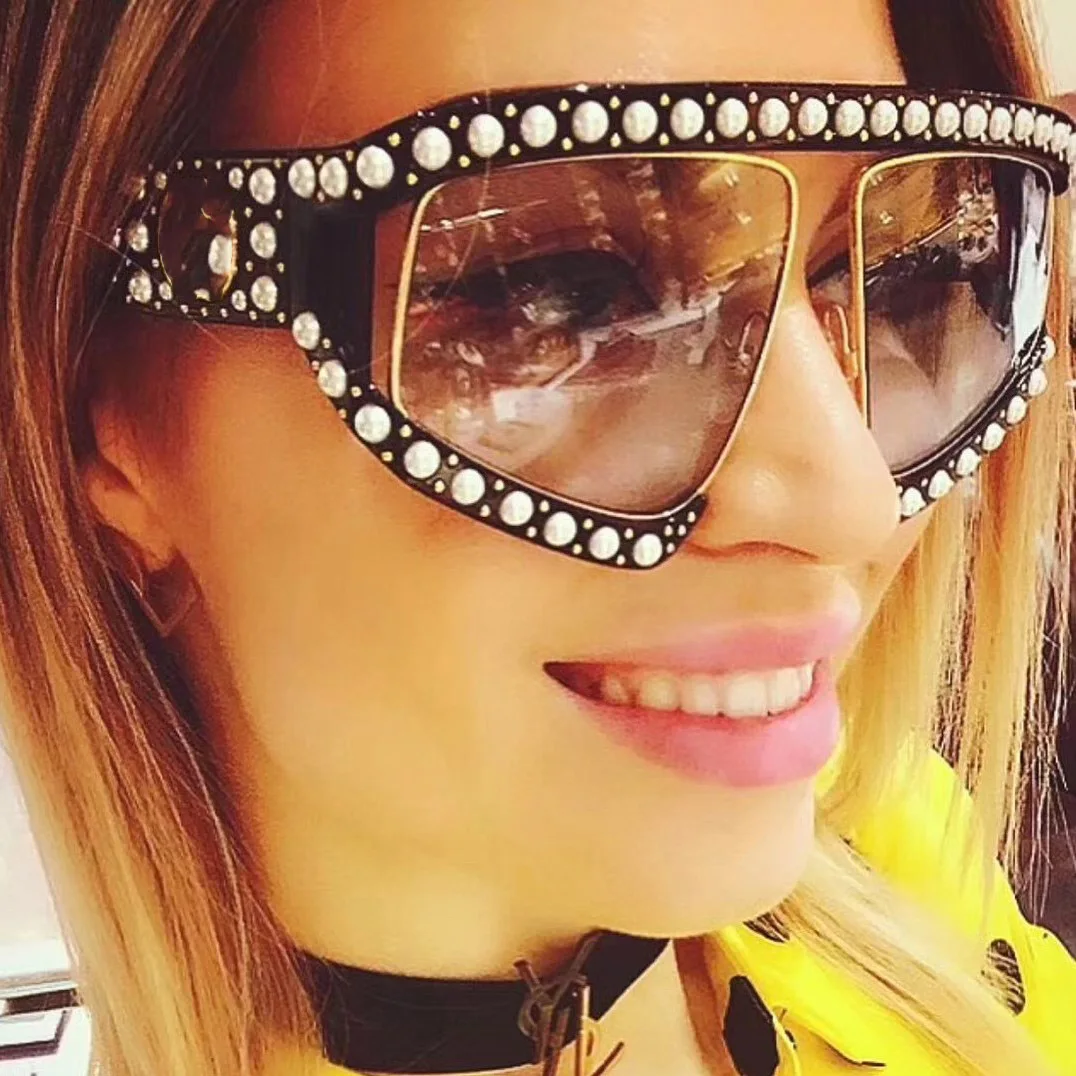 CCspace Квадратные Солнцезащитные очки с жемчужной оправой, женские очки, роскошные Брендовые очки, дизайнерские женские очки, 45448