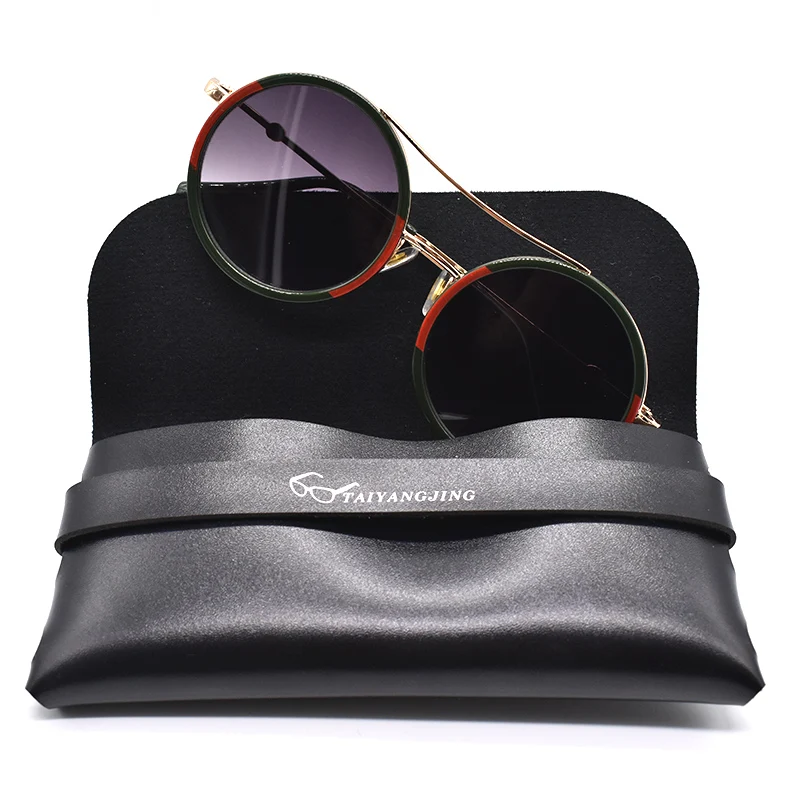 Солнцезащитные очки женские, винтажные с сумкой, круглые очки с двойными балками, брендовые дизайнерские солнцезащитные очки в металлической оправе