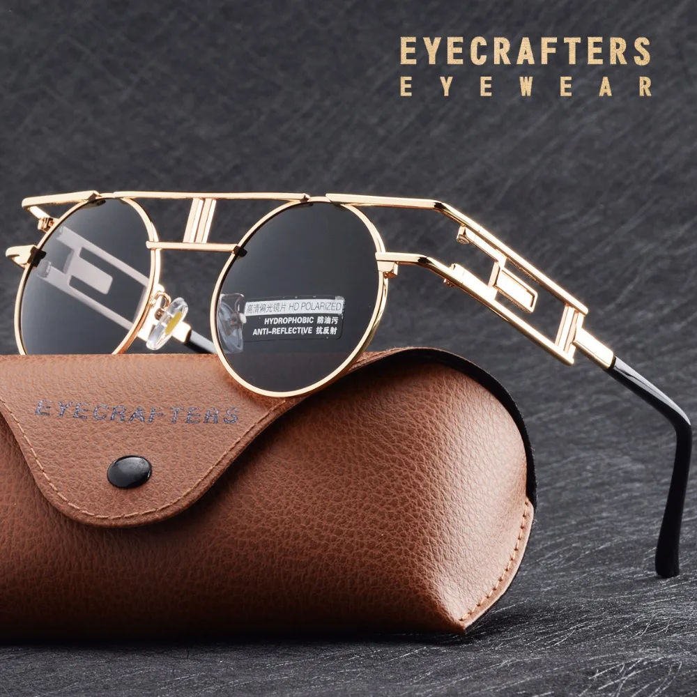 Eyecrafters круглые металлические поляризованных солнцезащитных очков Готический стимпанк Солнцезащитные очки для мужчин женщин Мода ретро Ви...