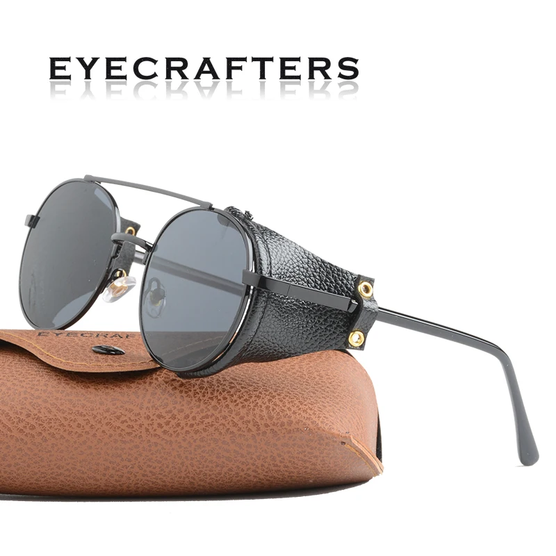 Металлический градиент 2020 мужские стимпанк готические очки Солнцезащитные очки женские ретро модные кожаные с боковыми оттенками круглые солнцезащитные очки