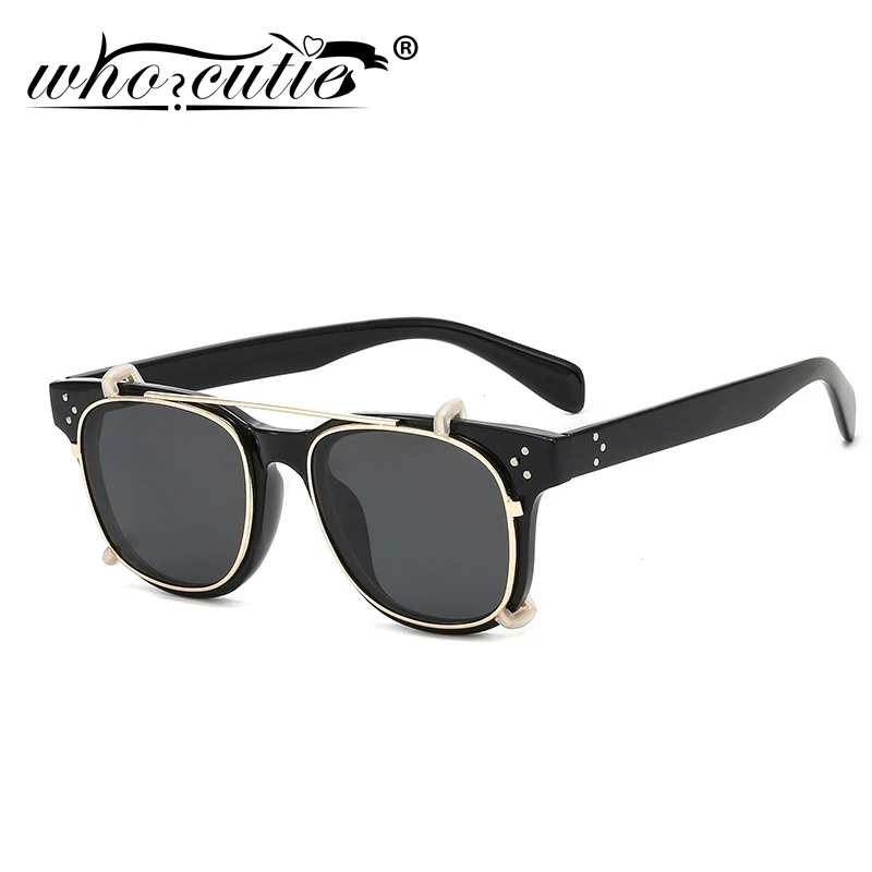 Модные солнцезащитные очки в стиле стимпанк на застежке со съемными линзами, винтажный фирменный дизайн, три точки, леопардовая квадратная ...