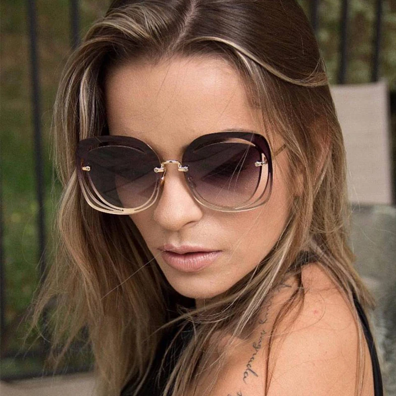 Винтажные Солнцезащитные очки для женщин без оправы, квадратные солнцезащитные очки для женщин, брендовые Роскошные модные градиентные солнцезащитные очки для женщин, роскошные женские очки