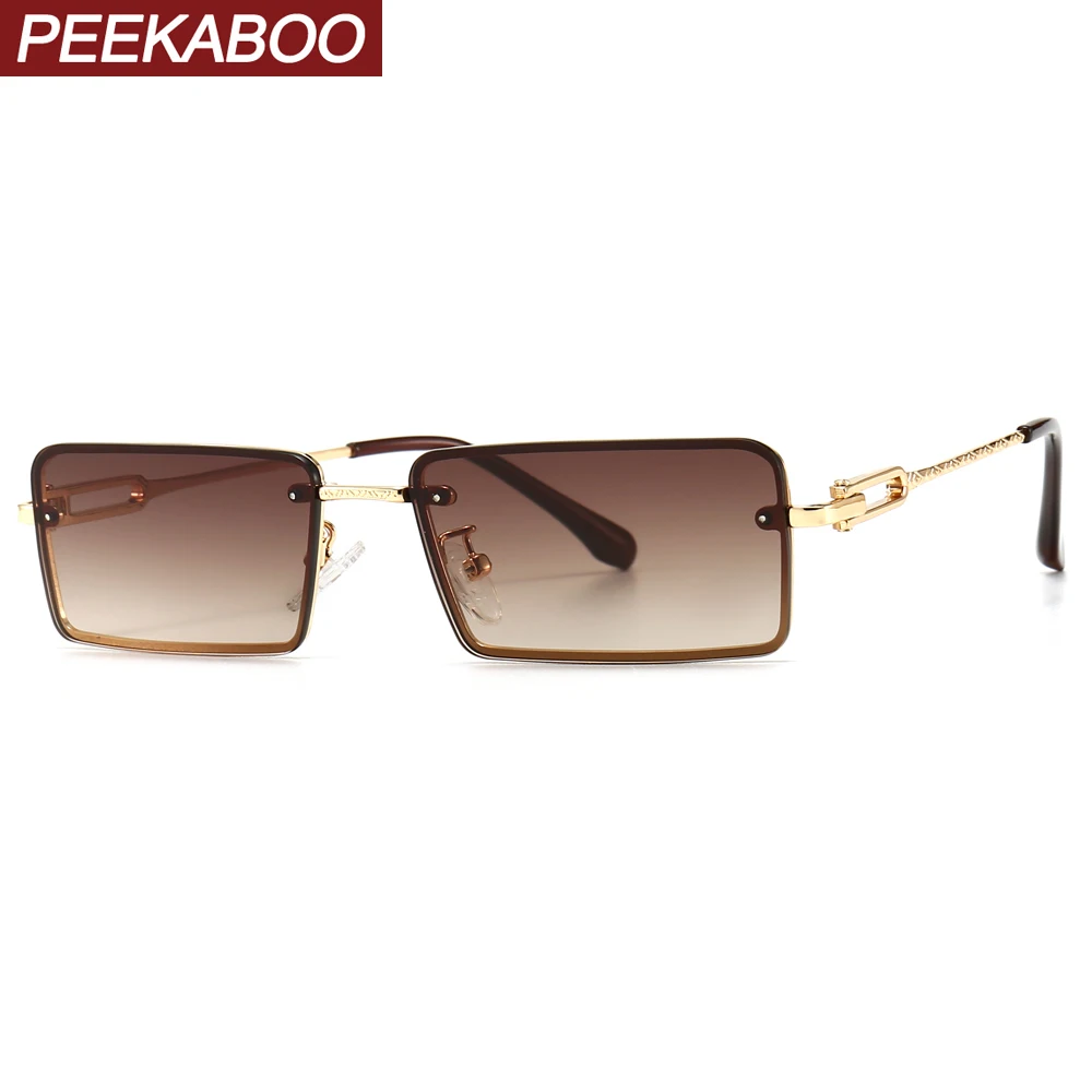 Мужские и женские солнцезащитные очки peekabo, тонкие прямоугольные очки в металлической оправе, квадратные солнцезащитные очки в ретро-стиле, uv400, коричневые, без оправы