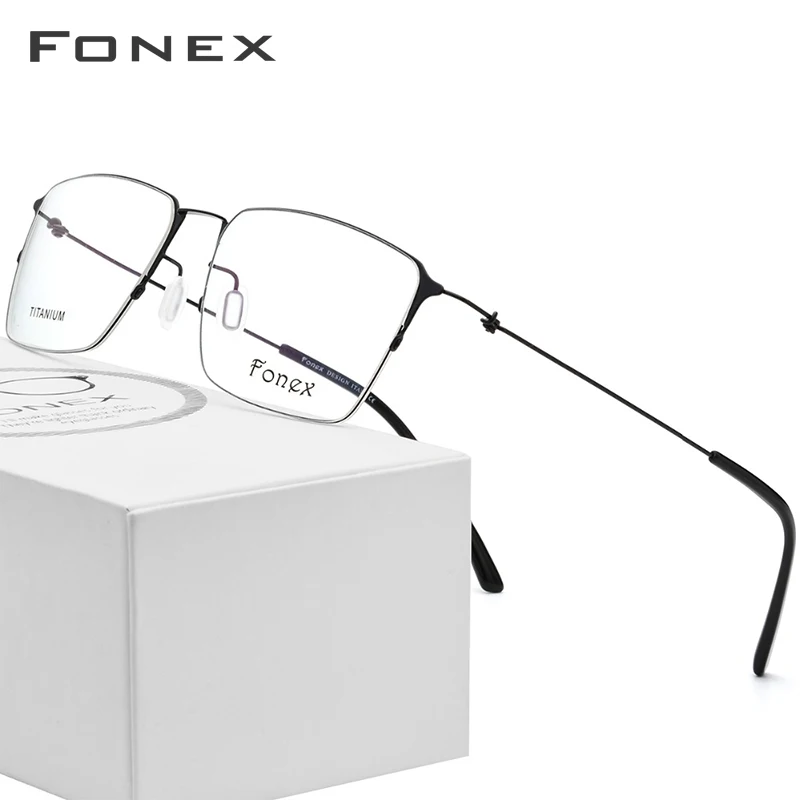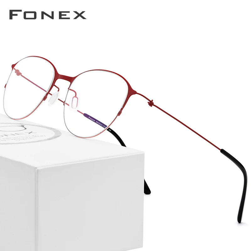 Мужские очки из титанового сплава FONEX, круглые оправы для очков по рецепту для женщин и мужчин, оптические оправы для близорукости, корейские Безвинтовые очки 98612