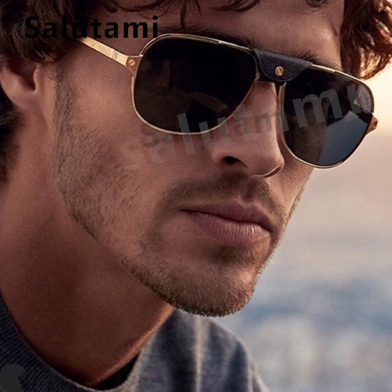 Кожаные квадратные солнцезащитные очки на кнопках для мужчин, роскошные брендовые солнцезащитные очки для мужчин, классические винтажные ...