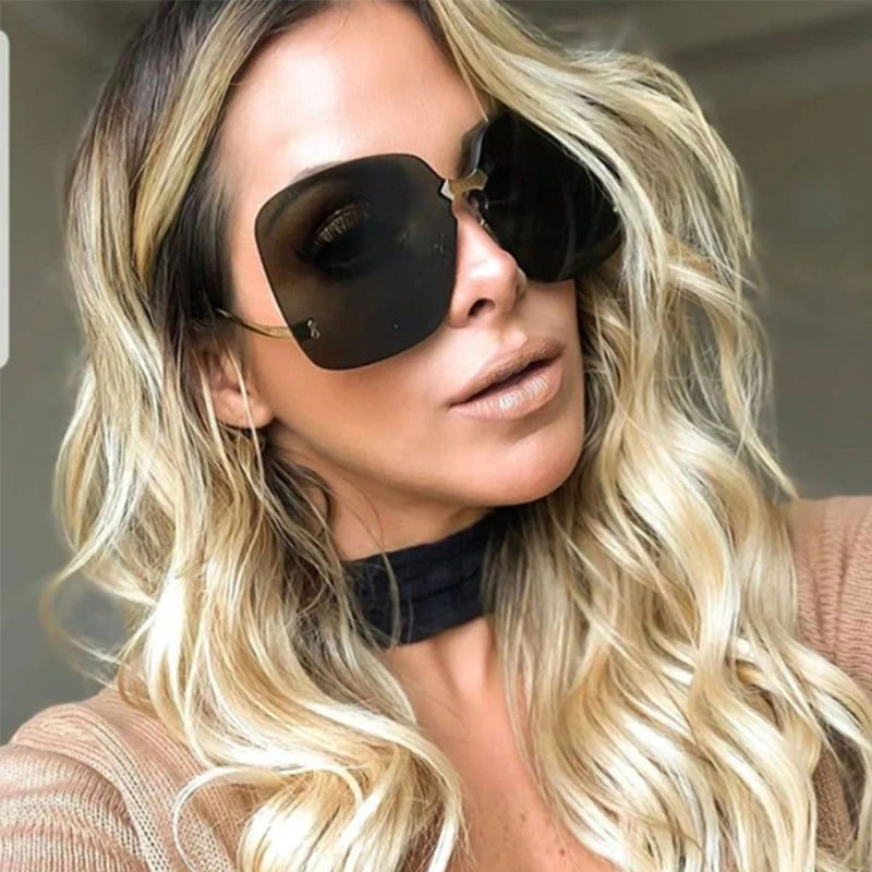 Женские солнцезащитные очки оверсайз без оправы, коричневые женские очки с градиентными линзами, модные женские солнцезащитные очки, 2019