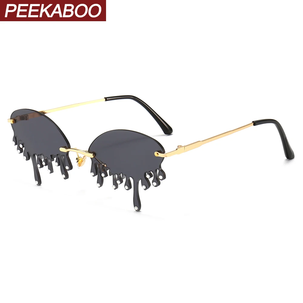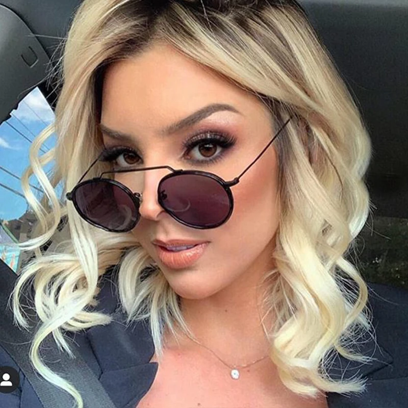 Ретро Овальные Солнцезащитные очки женские бескаркасные серый коричневый прозрачный объектив без оправы Солнцезащитные очки для женщин ...