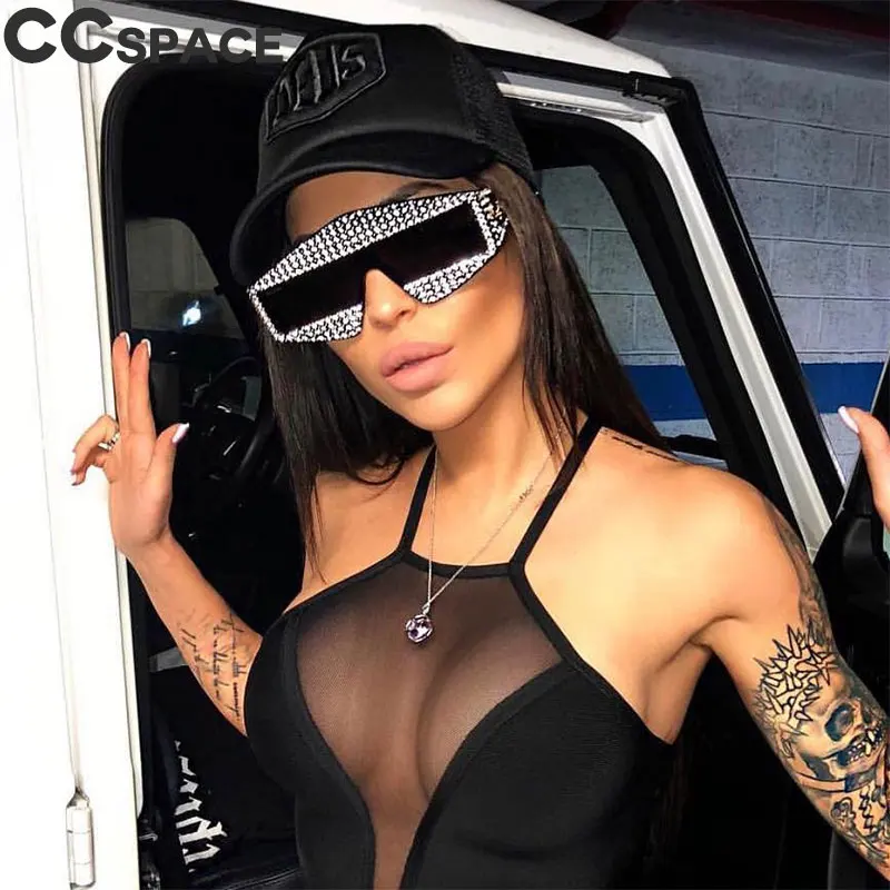 Подиумные шоу прямоугольные солнцезащитные очки для женщин 400 шт блестящие стразы оправа для мужчин 45495 CCSPACE брендовые роскошные очки Модные оттенки