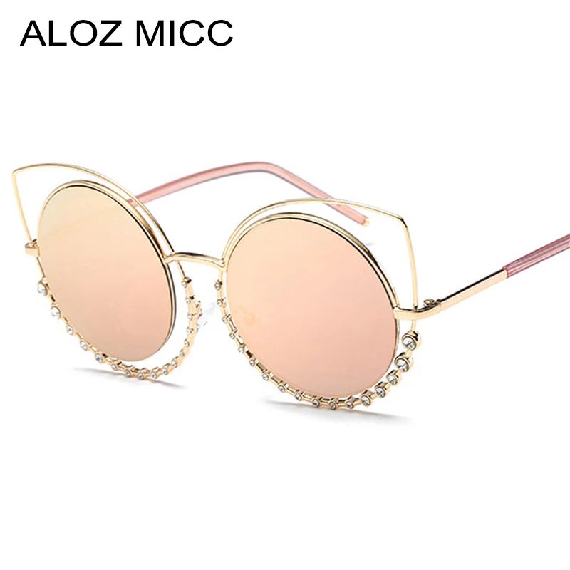 ALOZ MICC Роскошные пикантные «кошачий глаз» Для женщин Винтаж металлический каркас с инкрустацией бриллиантами солнцезащитные очки женский о...