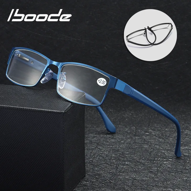 Iboode Для мужчин Бизнес очки для чтения 2019 новый квадратный очки при дальнозоркости металл + TR90 очки для чтения мягкие диоптрий 1,0 до 4,0