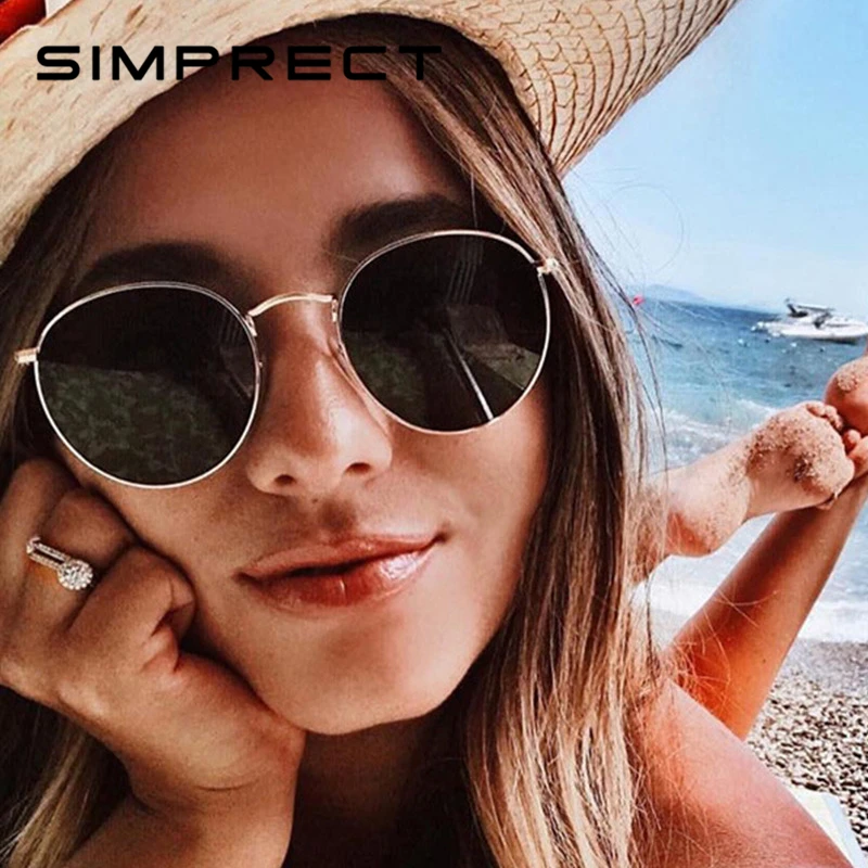 SIMPRECT Ретро Круглый Солнцезащитные очки для женщин для 2019 розовое зеркало металла мужчин Защита от солнца очки винтажная, брендовая, дизайне...