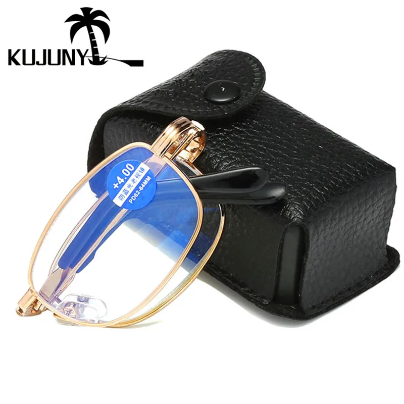 KUJUNY многофункциональные портативные очки для чтения, анти-синий светильник, очки для дальнозоркости, металлические складные очки для дальнозоркости с коробкой