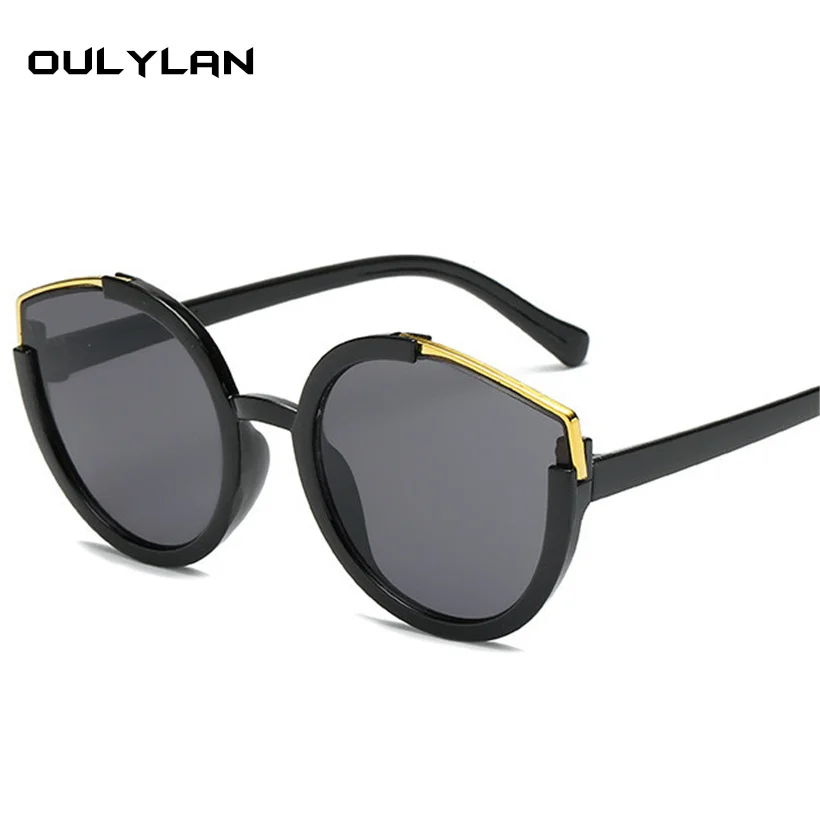 Oulylan кошачий глаз солнцезащитные очки бренда класса «Люкс» Дизайнер Винтаж негабаритных Защита от солнца очки Дамы Черный наполовину оправ...