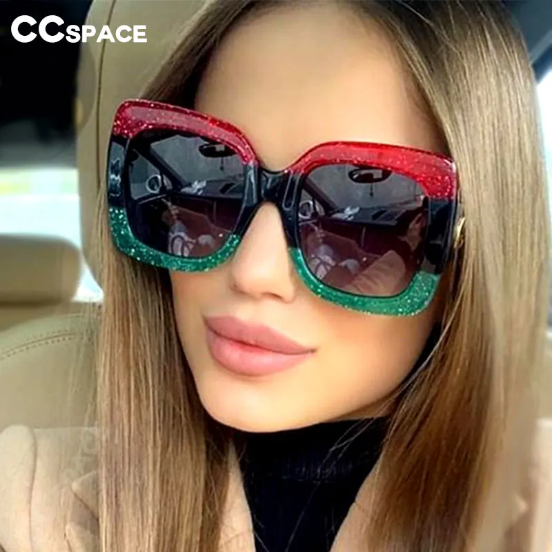 Роскошные Шикарные солнцезащитные очки Женские квадратные солнцезащитные очки блестящая оправа с кристаллами 45283 CCSPACE Брендовые очки модные женские Оттенки UV400