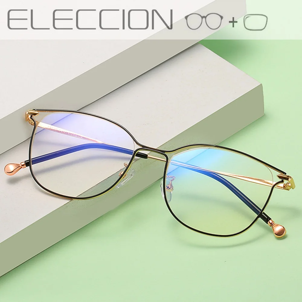Женские оптические оправы кошачий глаз с линзами, Ультралегкая Металлическая оправа, женские очки по рецепту, прозрачные очки для близорукости