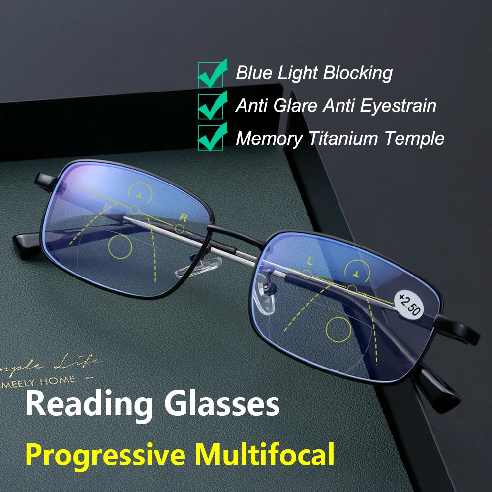 Унисекс синий светильник, блокирующие очки для чтения, прогрессивные многофокальные очки для пресбиопии, антибликовые очки для чтения