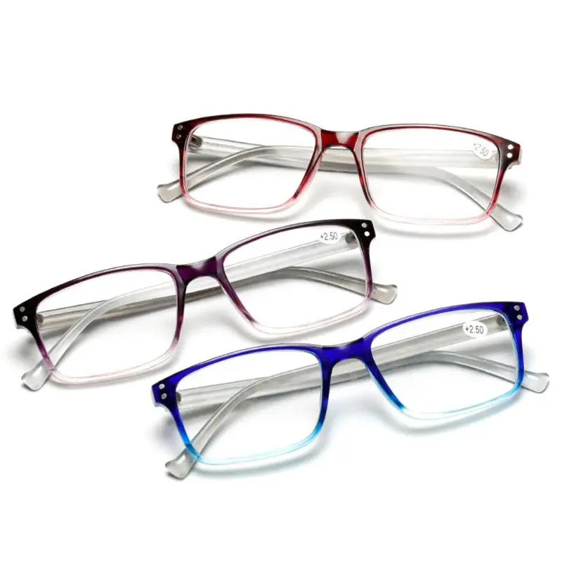 Новые простые удобные очки для чтения Легкие мужские и женские квадратные ПК рамки градиентного цвета