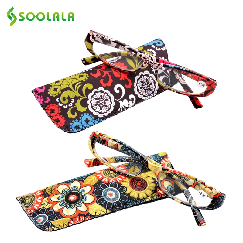 SOOLALA печатных очки для чтения женщин весна шарнир прямоугольные очки для чтения для дальнозоркости W/соответствующие чехол + 1,0 1,5 2,25 4,0 до 1,75