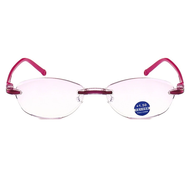 Очки без оправы для чтения дальнозоркость синий свет Блокировка бескаркасная Лупа красные очки + 1,0, + 1,5, + 2,0, + 2,5, + 3,0