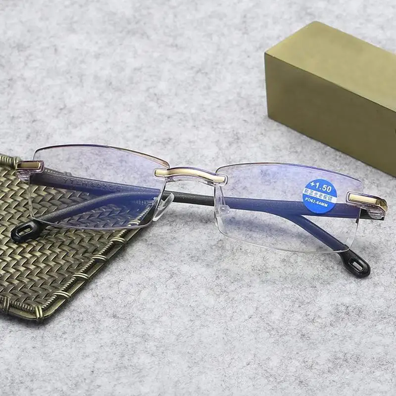 Анти синий свет без оправы очки для чтения для женщин и мужчин прозрачные блокирующие бескаркасные компьютерные очки Пресбиопия