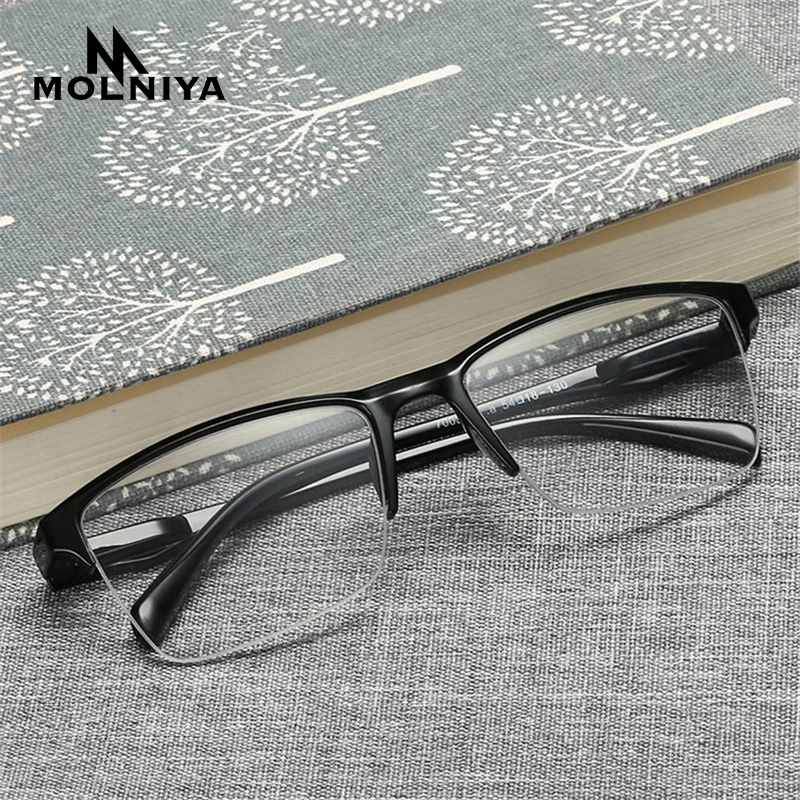 Новинка, полуоправа, очки для чтения, очки для дальнозоркости, мужские, женские, дальний прицел, очки, ультра светильник, черный, с прочностью + 75 до + 400