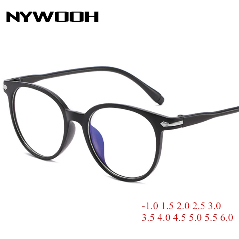 NYWOOH очки для близорукости, женские и мужские прозрачные очки, студенческие винтажные круглые короткие очки для коррекции зрения-от 1,0 до 6,0