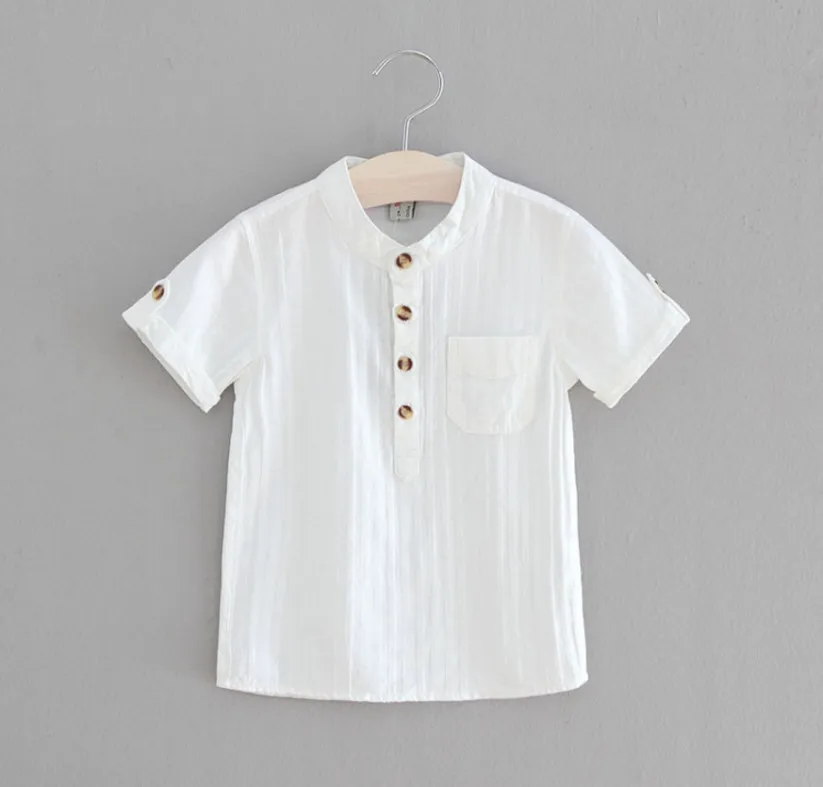 2018 Повседневные рубашки для мальчиков детские, для малышей хлопок короткий рукав блузка на лето дети Обувь для мальчиков белая рубашка Стен...
