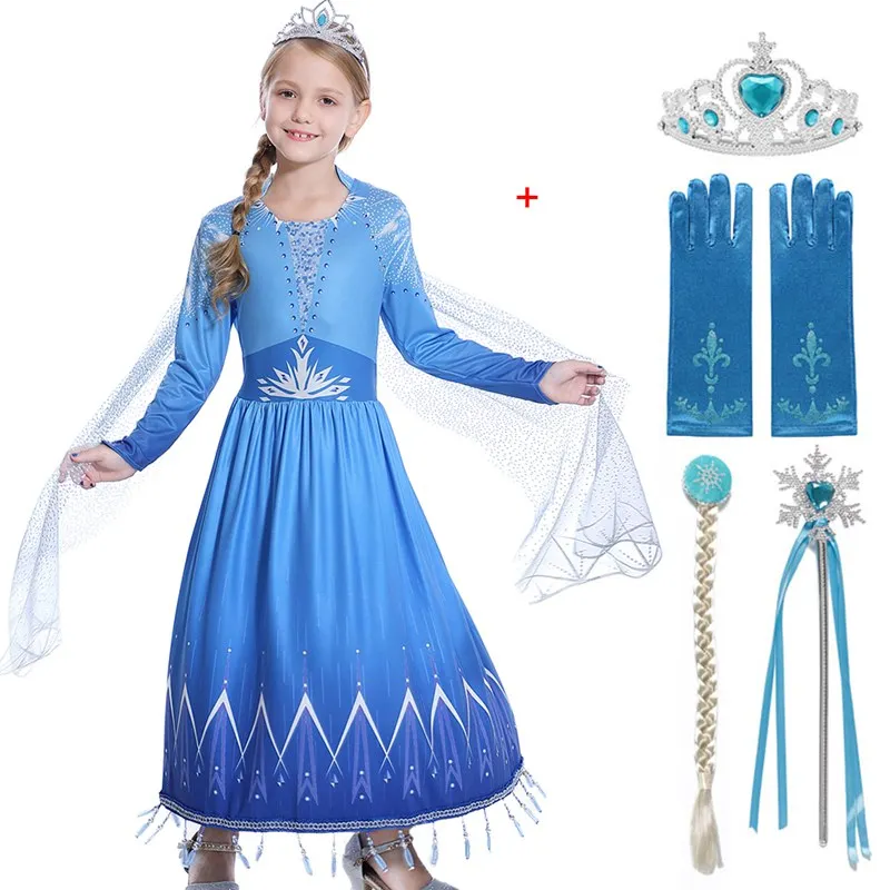 VOGUEON, новинка, платье принцессы Эльзы 2 для детей, карнавальный костюм Снежной Королевы на Хэллоуин для девочек, нарядный костюм праздничная ...