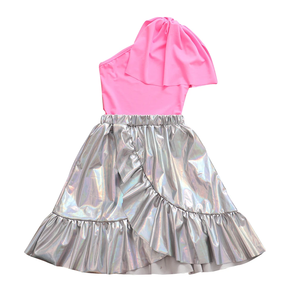 Chifuna/Новые летние однотонные вечерние модные футболки с рюшами + стильные юбки Комплекты из 2 предметов одежда для маленьких девочек, компле...