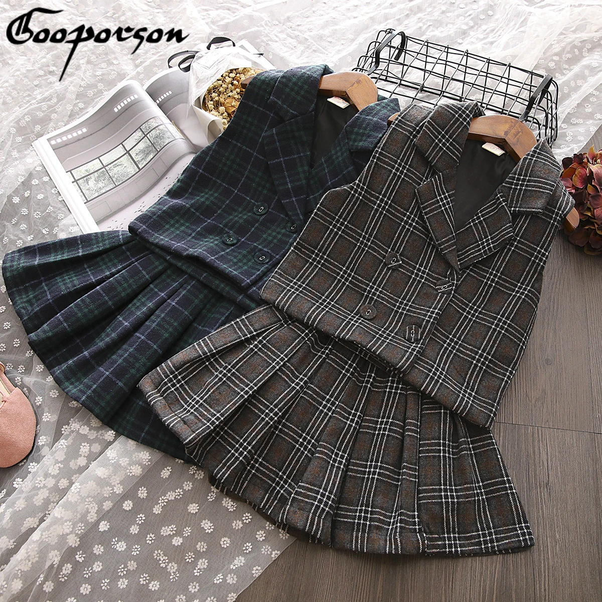 Новый весенний клетчатый комплект из двух предметов для девочек, модная клетчатая куртка и юбка, винтажный комплект одежды, новая одежда дл...