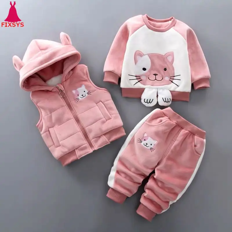 Новинка 2019 года, теплый комплект для маленьких мальчиков и девочек, зимний утепленный жилет с капюшоном и рисунком кота + свитер + штаны, спор...