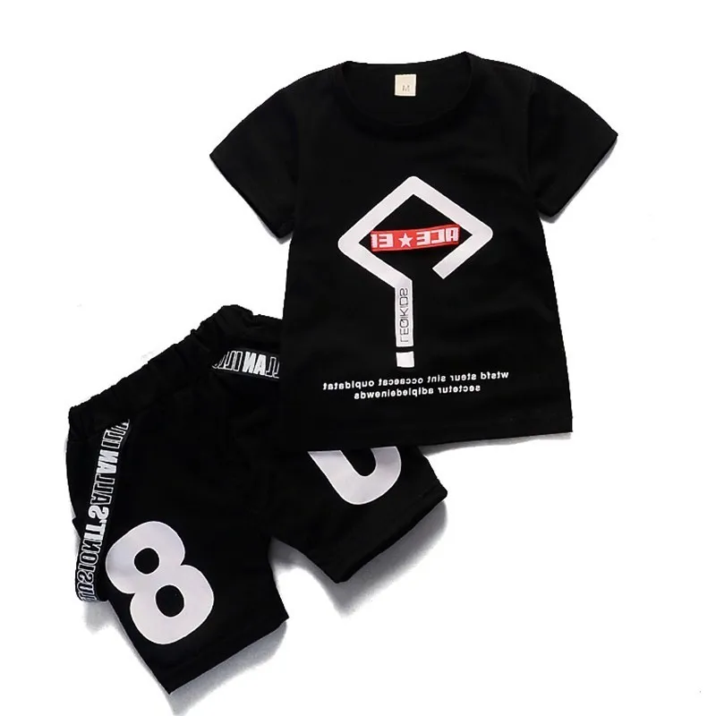 Летняя одежда для малышей 2020, костюмы из 2 предметов с буквенным принтом для маленьких мальчиков, Модный комплект одежды для младенцев чистого цвета, спортивный костюм