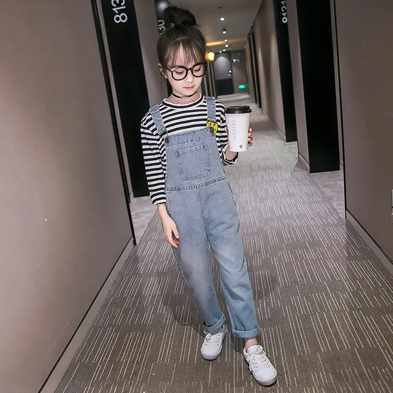 Новинка 2020 года; Джинсовые комбинезоны для девочек; Повседневный Детский комбинезон для девочек; Джинсы для подростков; Джинсовые брюки-карго с лямками для подростков