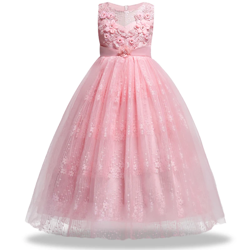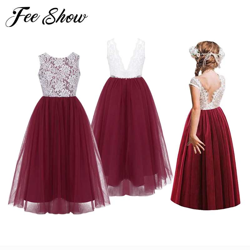 Летние Детские платья для девочек, кружевные платья без рукавов с открытой спиной, v-образный вырез, вечерние платья принцессы, церемониальн...