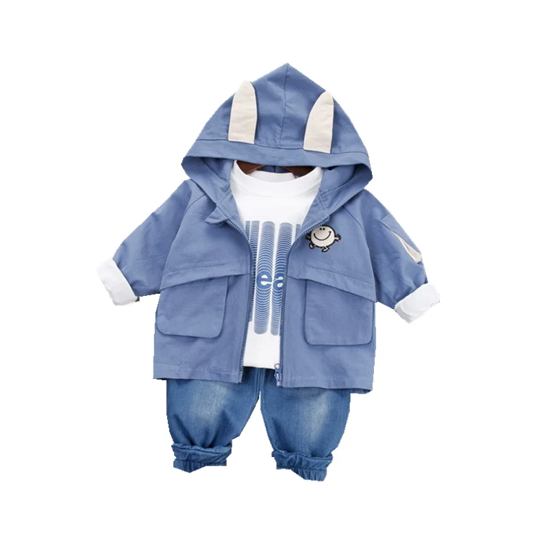 Осенний комплект одежды для маленьких мальчиков, комплекты одежды для девочек, 2020 год пальто с капюшоном для младенцев Футболка и джинсы Детский Повседневный костюм из 3 предметов