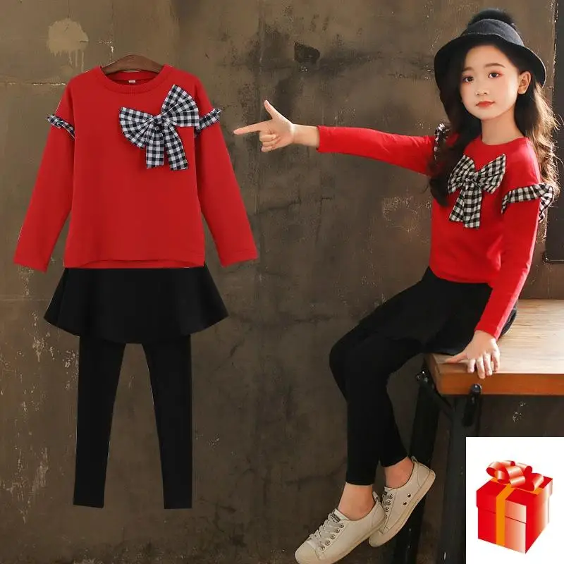 Одежда для девочек 2018 новая бабочка набор «бабочка» корейское издание досуг длинный рукав Защита + юбка и брюки двухсекционный костюм
