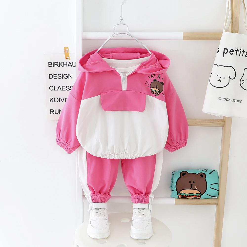 Одежда для малышей с героями мультфильмов, весенние костюмы с длинными рукавами и капюшоном для мальчиков и девочек комплект детской одежд...